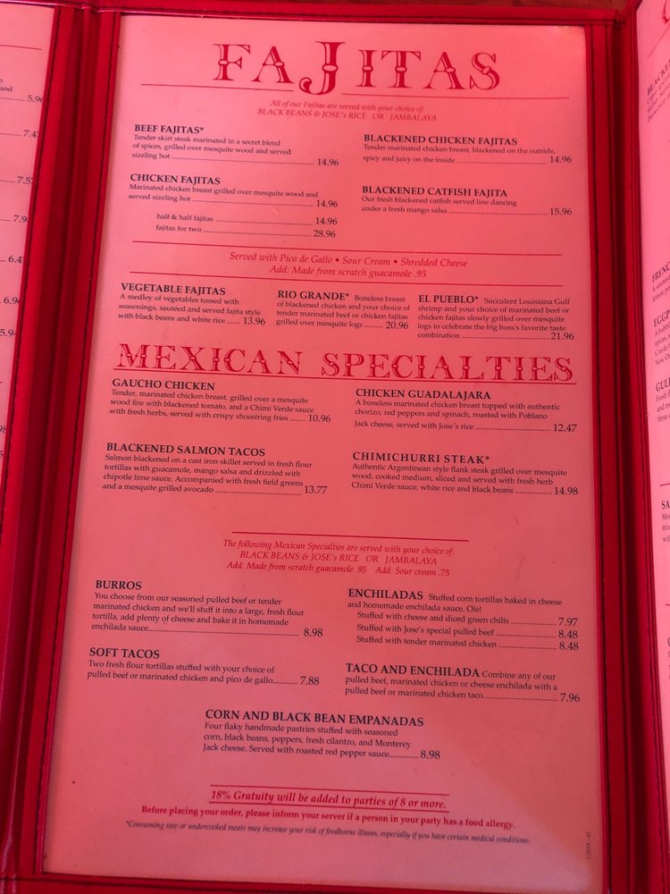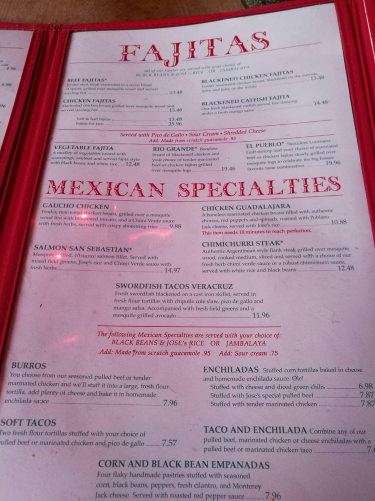 a fresh oz. swordfish steak grilled over a mesquite fire, glazed with jalapeno butter. served with our own seasoned corn and black beans, jose's rice and mango salsa.